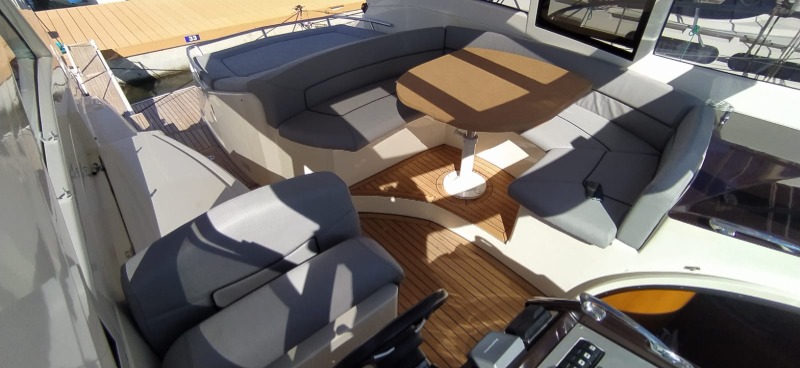 La coperta è il cuore della barca: in pochi gesti passi dal sole pieno all’ombra dell’hard top, con ventilazione naturale e protezione quando il meteo cambia. I passavanti sono continui e sicuri, la plancia è ergonomica e leggibile anche alle andature di crociera.