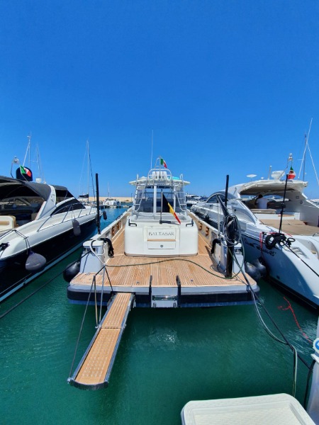 Il Bluegame 47 (spesso indicato come BG47) è stato uno dei primi progetti a definire lo stile del cantiere: profilo sportivo ma elegante, passavanti protetti, prua sfruttabile e un grande pozzetto modulare che diventa il cuore della barca. Sotto la linea d’acqua, la carena è pensata per entrare morbida nell’onda, tenere rotta e offrire una crociera brillante con consumi razionali per la categoria.