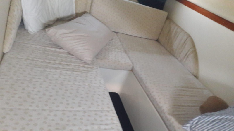 Sottocoperta si trova un salone luminoso con divano e tavolo da pranzo, una cucina attrezzata e due cabine accoglienti: una cabina armatoriale a prua con letto matrimoniale e una cabina ospiti a poppa con due letti singoli.