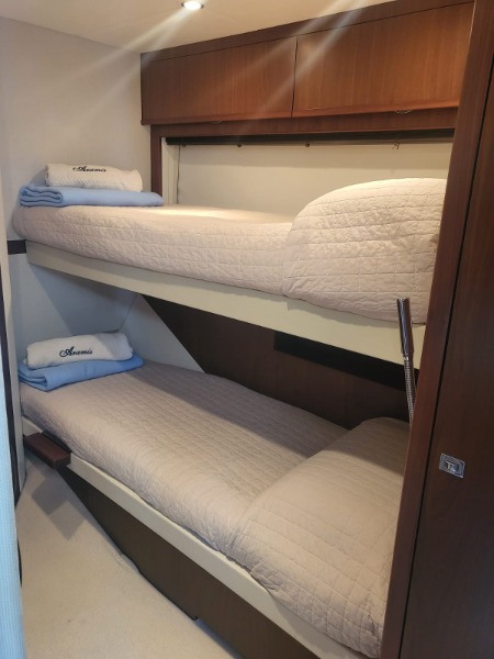 Con una lunghezza di 24 metri e una larghezza di oltre 5 metri, il Princess V 78 combina spazi generosi e prestazioni notevoli tanto da assicurare velocità di crociera intorno ai 30 nodi. Nel 2019 è stata effettuata dalla Caterpillar la revisione completa dei due motori con la sostituzione di quasi tutti i componenti degli stessi comprese le testate (documentazione a disposizione). Nello stesso anno si è provveduto al rifacimento dell’impianto elettrico/domotica/gestione di bordo con sostituzione di apparecchiature e cavi ed è stato sostituito completamente anche l’intero sistema WC. Successivamente è stato sostituito il teak della coperta con tek massello. Nel 2024 la sostituzione parziale del sistema di condizionamento e la sostituzione di un generatore. Ogni dettaglio, dai materiali di coperta ai sistemi elettronici, riflette la cura e l’ingegneria tipiche di Princess Yachts.