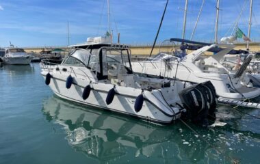 Barometro, Doccia esterna, Pozzetto in teak, Soft-Top apribile, Tavolo pozzetto, Scala da bagno, Passerella idraulica, Lavello esterno con Frigo, Prendisole di prua, Dinette interna, N°2 Wc marini elettrici interni, N°2 Docce interne, N°2 lavelli interni, Antenna TV, TV interne, Impianto acque nere, Frigo interno, Piastra elettrica interna, Oscuranti parabrezza, Tenda camper, Protezione soft top, Pompe di sentina manuali, Pompe di sentina automatiche, Boiler, Autoclave, Luci sommerse, Tappezzeria esterna completa, Caricabatteria, Presa corrente banchina, Generatore.